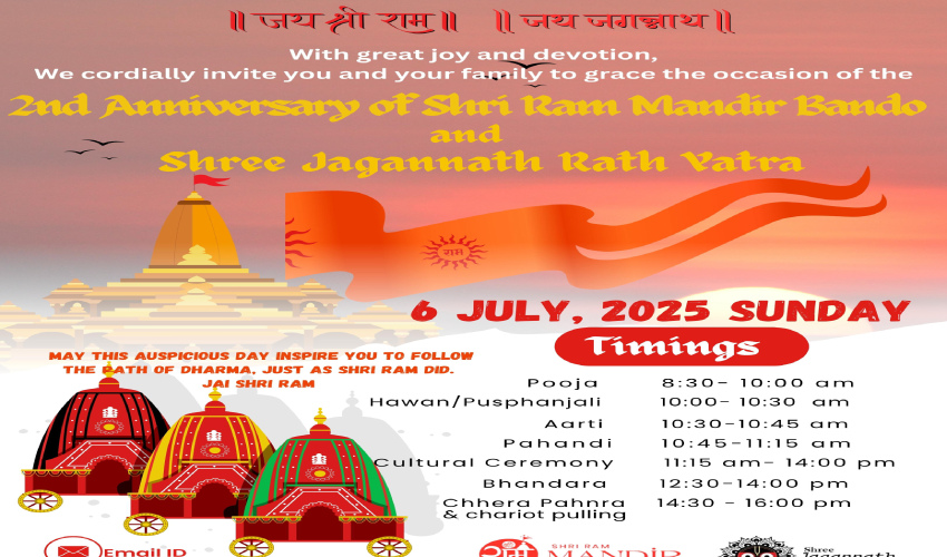 2nd Anniversary of Shri Ram Mandir Anniversary and Shree Jagannath Rathyatra