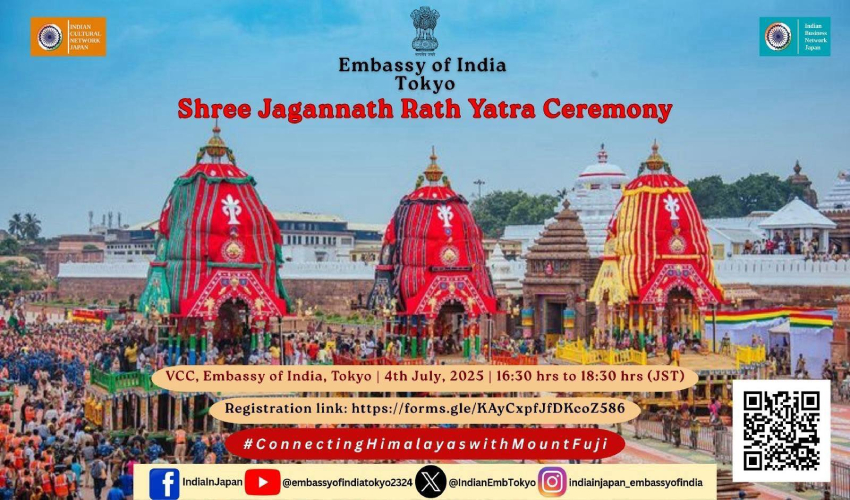 It is heartening for us to learn that the Indian Embassy Tokyo is going to host for the first time Shree Jagannath Ratha Yatra on 4 July 2025 (Friday) within the Embassy premises.